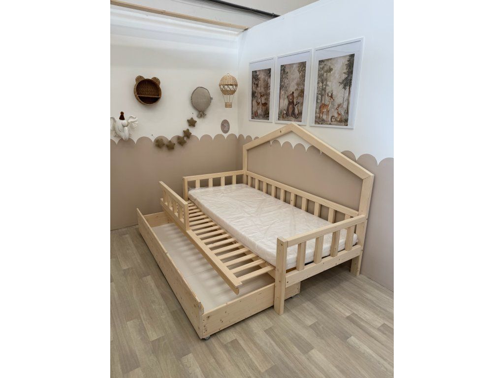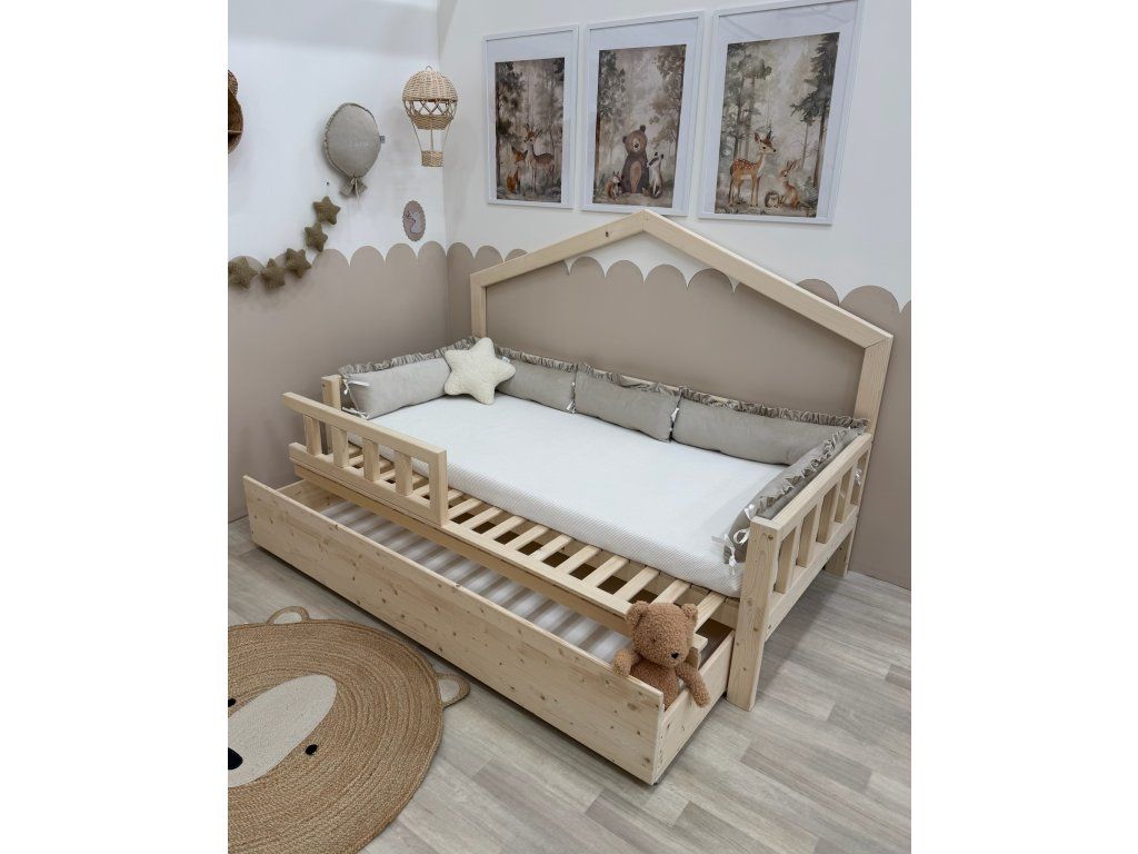 • 80 × 200 cm – výsuv lze zasunout i s matrací navrchu, zatímco úložný prostor pod ním zůstává volný, například na peřiny, polštáře, ložní prádlo nebo hračky.