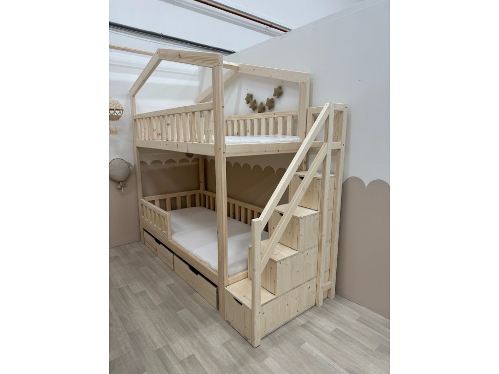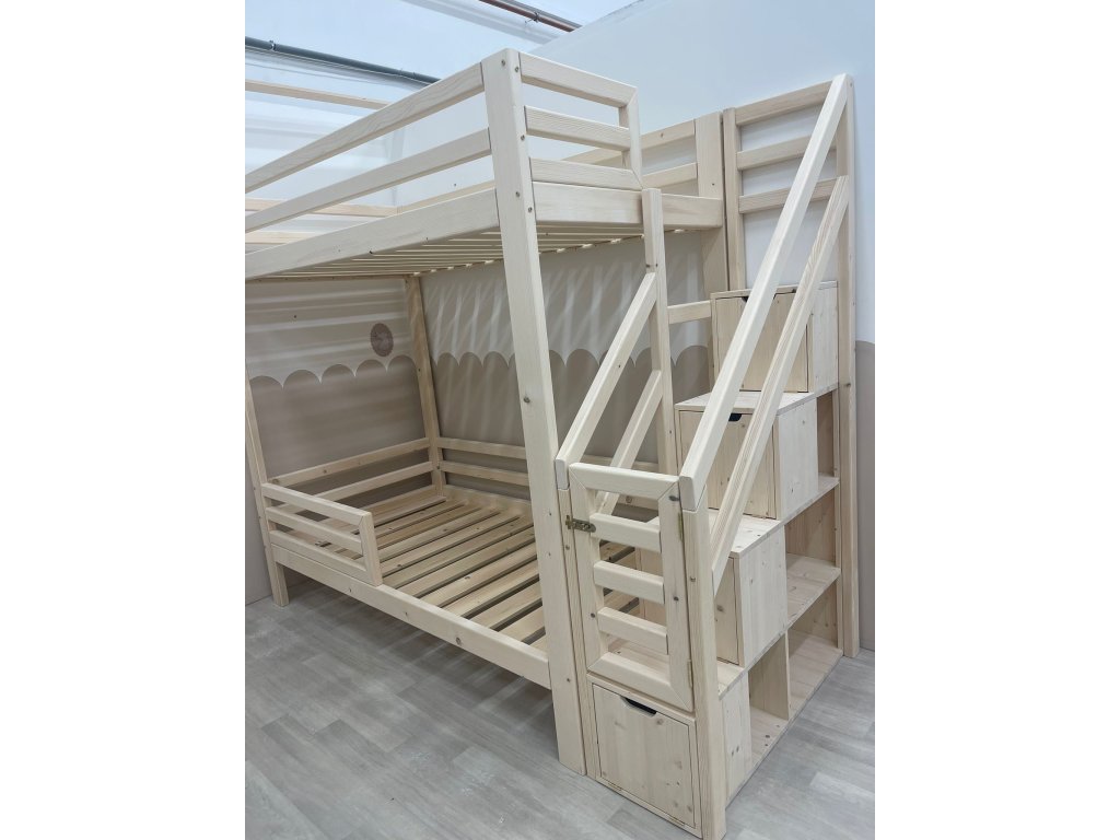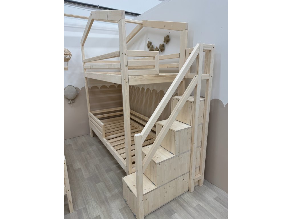 Díky schůdkům mohou na horním patře spát i menší děti a rodiče ocení schůdky při povlékání postýlky a navíc je v nich spousta úložného prostoru pro poklady vašich dětí .