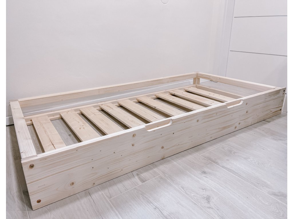 Přistýlka na kolečkách. Dřevěný šuplík s plným dnem nebo s roštem.